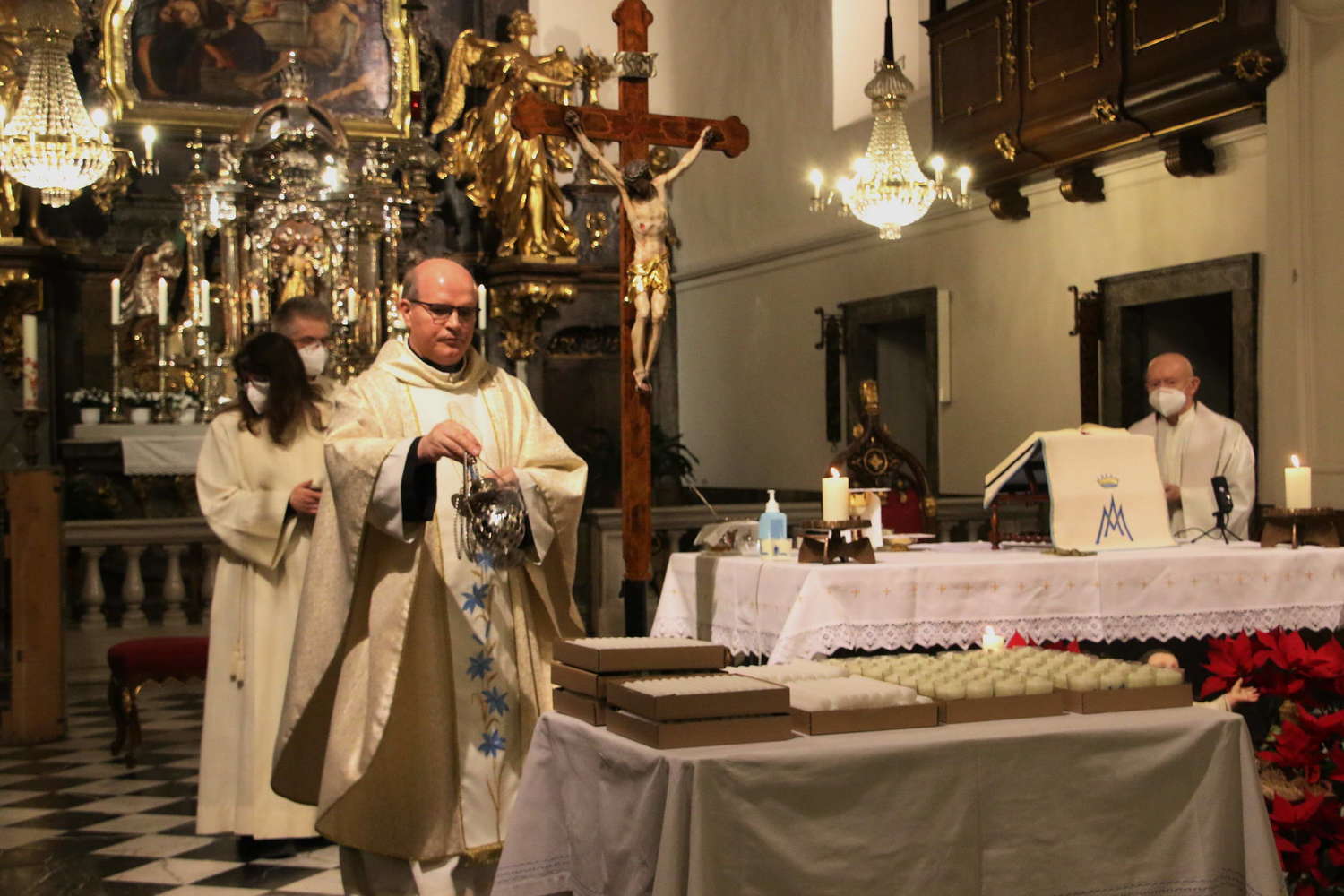 Am Dienstag, den 02. Februar 2021, feierten wir um 18:30 Uhr stellvertretend für die ganze Pfarrgemeinde die Heilige Messe am Fest der Darstellung des Herrn, Maria Lichtmess. Hauptzelebrant war Pfarrer P. Petru Farcaș OFMConv, Konzelebrant P. Clemens Breineder OFMConv. Zu Beginn der Heiligen Messe wurden die Kerzen gesegnet, die Sie noch bis Sonntag mit nach Hause nehmen können. Mehr Fotos zur Heiligen Messe finden Sie hier.