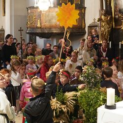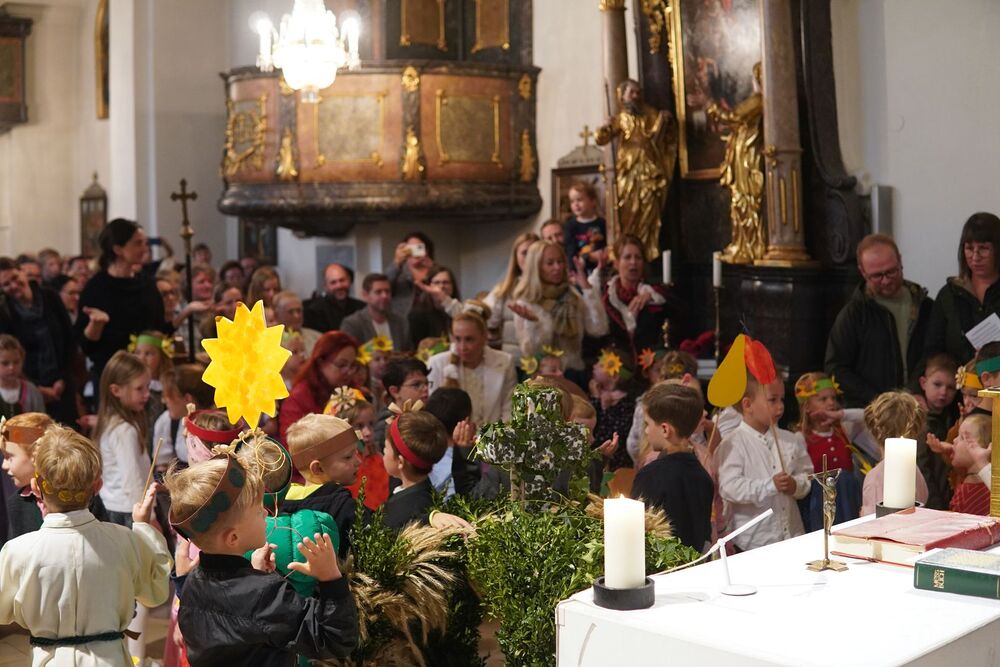 Ein herzliches Danke allen, die so schön mitgestaltet und mitgefeiert haben: Dies waren die Kindergartenkinder (Erntedank Tanz), die Minis und MS-Schüler*innen (Zeichenhandlung mit Erntegaben), die Landjugend (Erntekrone), die Musikgruppe (begeisternde Musik) und viele mehr.