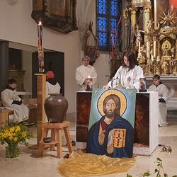 Der heurige Ostermontaggottesdienst, den Vikar Norbert Glaser mit uns feierte, wurde musikalisch vom Gemeinschaftschor der Pfarren Dobl, Premstätten und Wundschuh gestaltet. Unter der Leitung von Stefan Stampler und Magdalena Moser erklang - neben traditionellen Osterliedern - Musik von Felix Mendelssohn Bartholdy (Ordinarium für gemischten Doppelchor a cappella), die unseren Kirchenraum erfüllte und festliche, freudige Stimmung verbreitete.