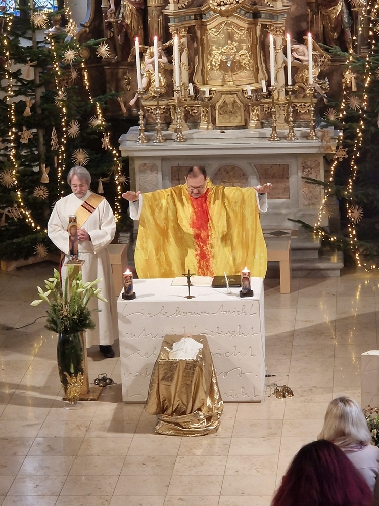 Am Christtag zelebrierte Vikar Gerhard Hatzmann die heilige Messe und wurde von Diakon Michi Zepf sowie einigen Minis unterstützt.