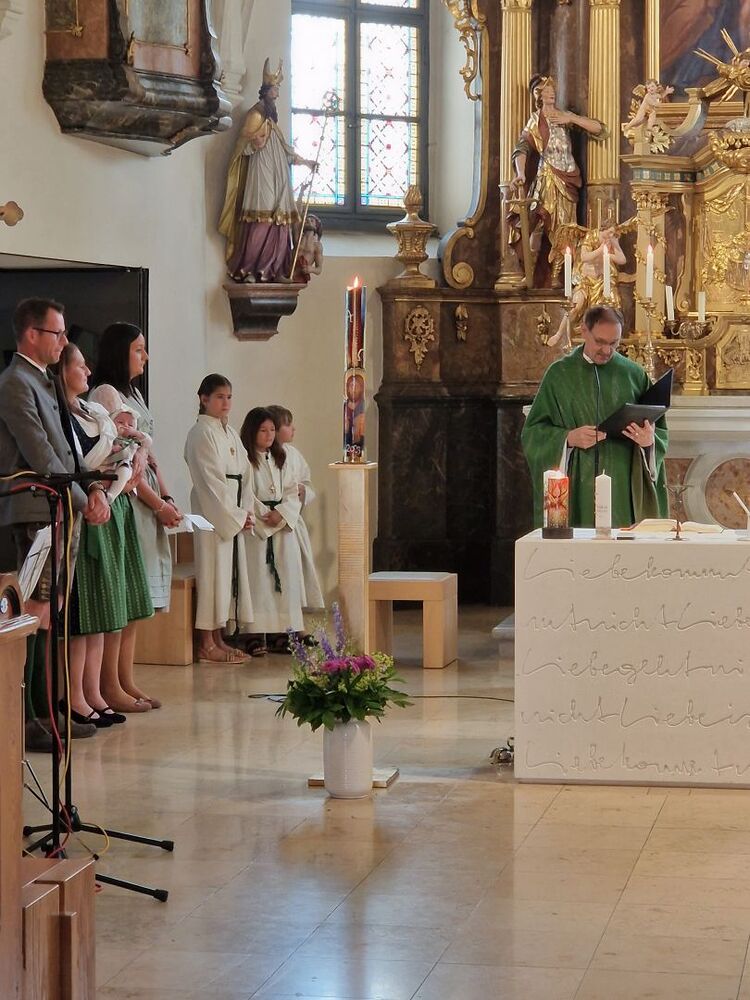 Ein großer Dank gilt allen, die dieses Fest den Kindern und ihren Familien ermöglicht haben: unserem Vikar Gerhard Hatzmann für die herzliche Feier, den Minis und der Mesnerin, dem Pfarrgemeinderat für das Richten des Feierplatzes im Freien, der Blasmusik, die alle begrüßte, den Musikerinnen und Musikern, die den Gottesdienst festlich umrahmten, und dem Sozialkreis für die Bewirtung nach dem Gottesdienst, sowie allen anderen, die still und unauffällig im Hintergrund zum Gelingen beigetragen haben.