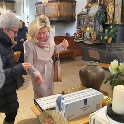 Mit einem königlichen Einzug begann der Sternsingergottesdienst am Dreikönigstag. Diakon Michi Zepf zelebrierte die Wort-Gottes-Feier mit Kommunionspendung zum „Hochfest der Erscheinung des Herrn“. In vielen Texten und Liedern kam das Anliegen der Dreikönigsaktion zum Ausdruck. Noch einmal trat eine Sternsingergruppe auf und präsentierte ihre Botschaft. Die Segnung des Dreikönigswassers und des Salzes, das auch zum Mitnehmen angeboten wurde, bildete zusammen mit der Allerheiligenlitanei, vorgetragen von Martin Kirchberger, den feierlichen Abschluss der WGF.