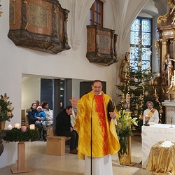 Nach herzlicher Begrüßung durch Diakon Michi Zepf zelebrierte Markus, der ehemals Pastoralpraktikant in unserer Pfarre und Pastoralreferent im Seelsorgeraum Kaiserwald gewesen war, in festlichem Rahmen die heilige Messe.