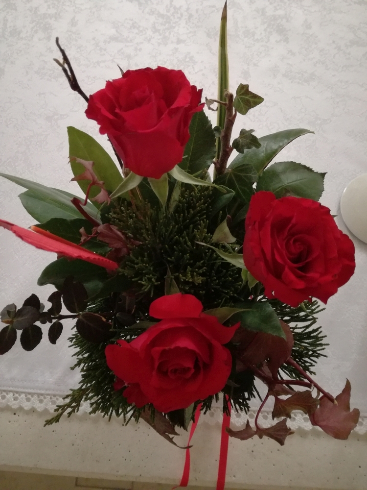 Viele Rosen schmückten die Kirche beim Ehejubiläumsgottesdienst, den wir am 22. Oktober mit Vikar Norbert Glaser feiern durften.