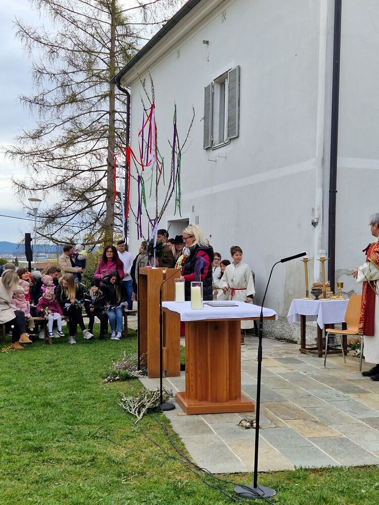 Dieses freudige Geschehen feierten wir am 2. April in großer Gemeinschaft auf unserem Kirchplatz. Diakon Michi Zepf zelebrierte und viele wirkten an der Gestaltung mit: die Musikgruppe, der Kirchenchor, Minis und JS (Passion), die Kindergartenkinder (Lieder), MS-Schülerinnen (Fürbitten) und die LJ (Palmbuschen). Danke allen fürs Kommen, Mitfeiern und Mithelfen!